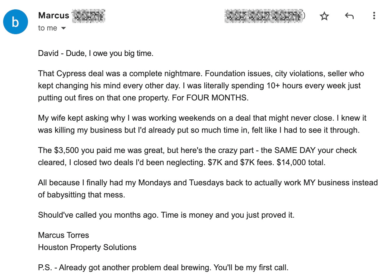 I wired her $3,800. Deal disappeared. Threats stopped. Business saved.